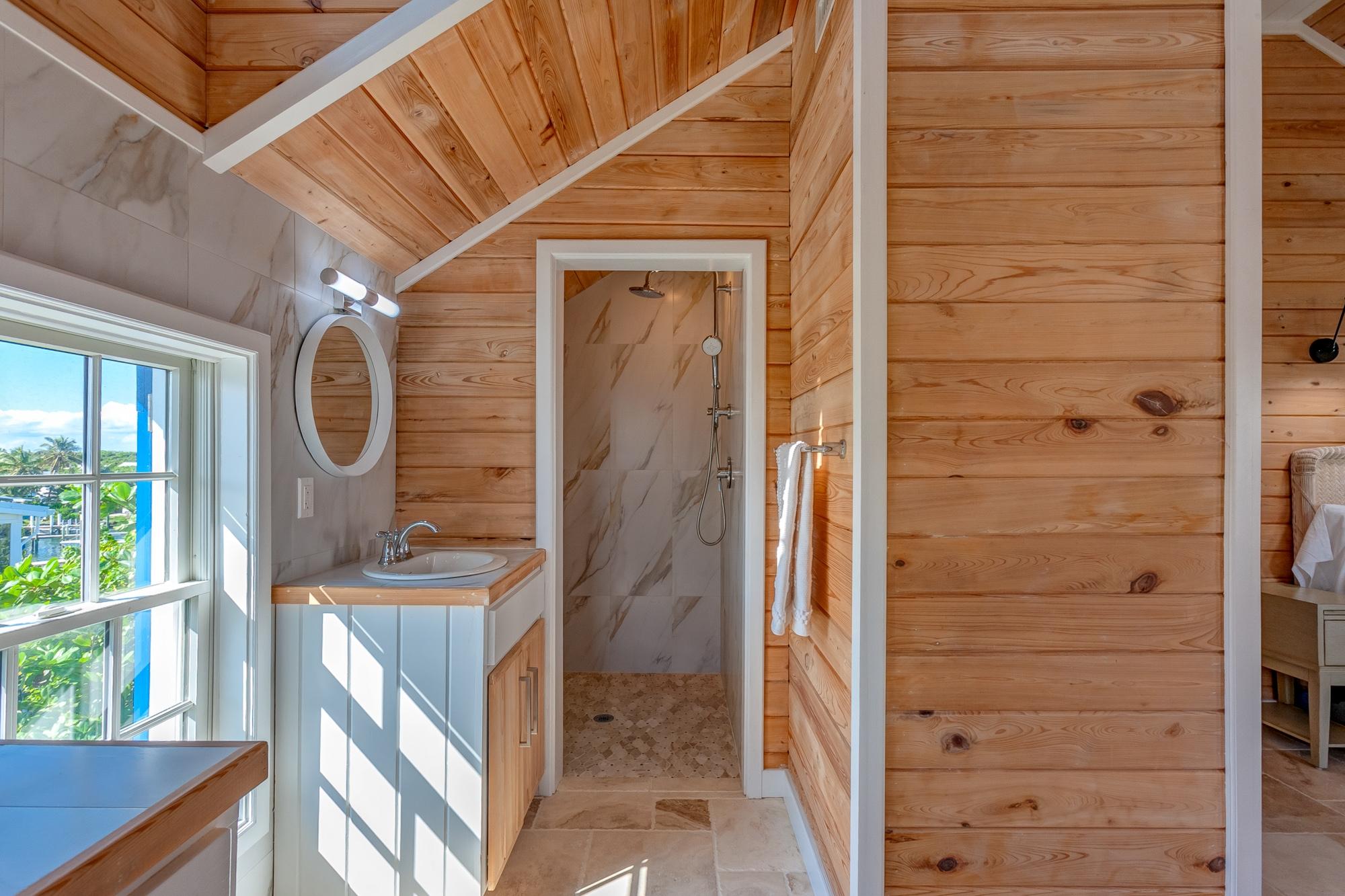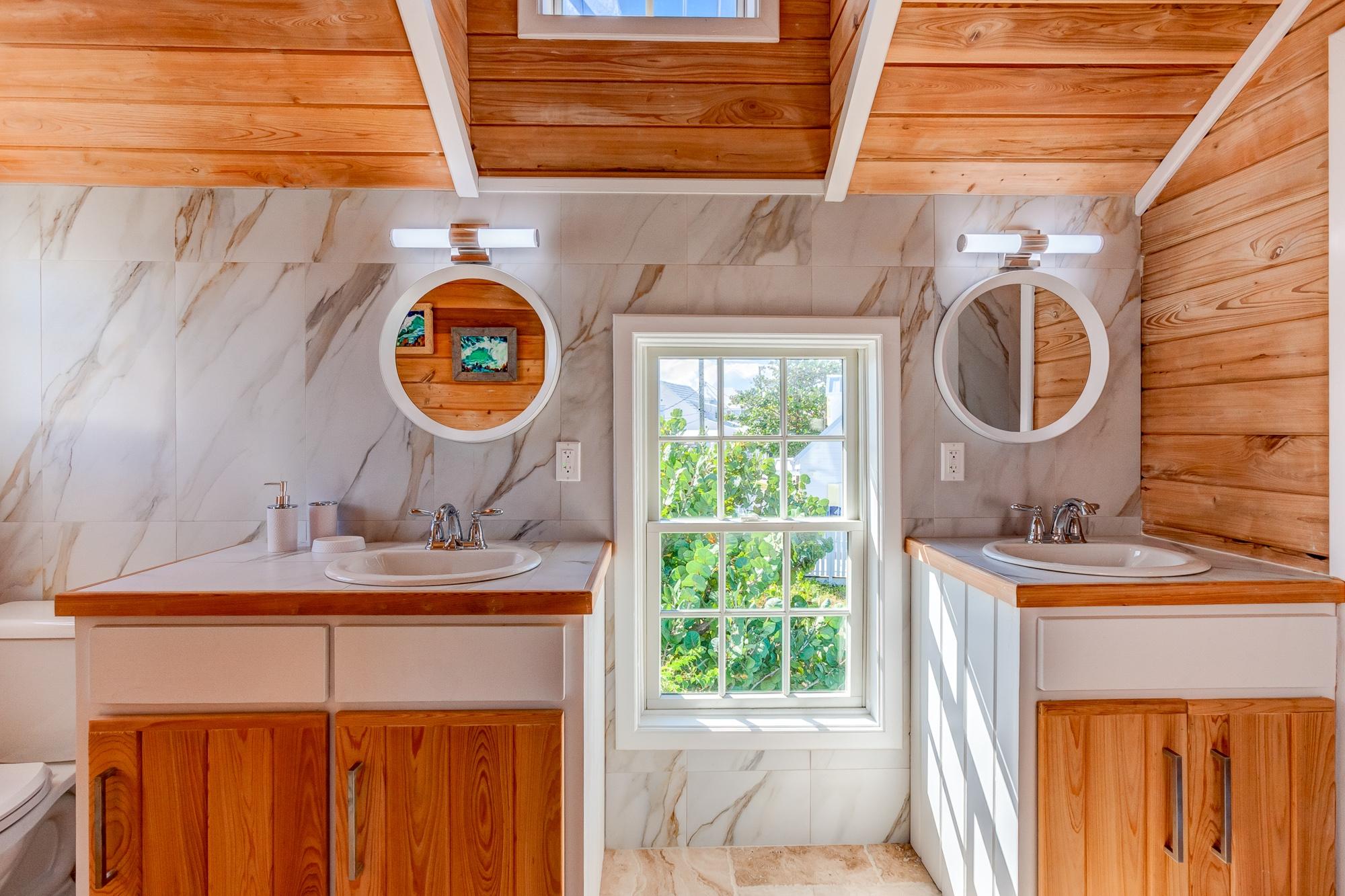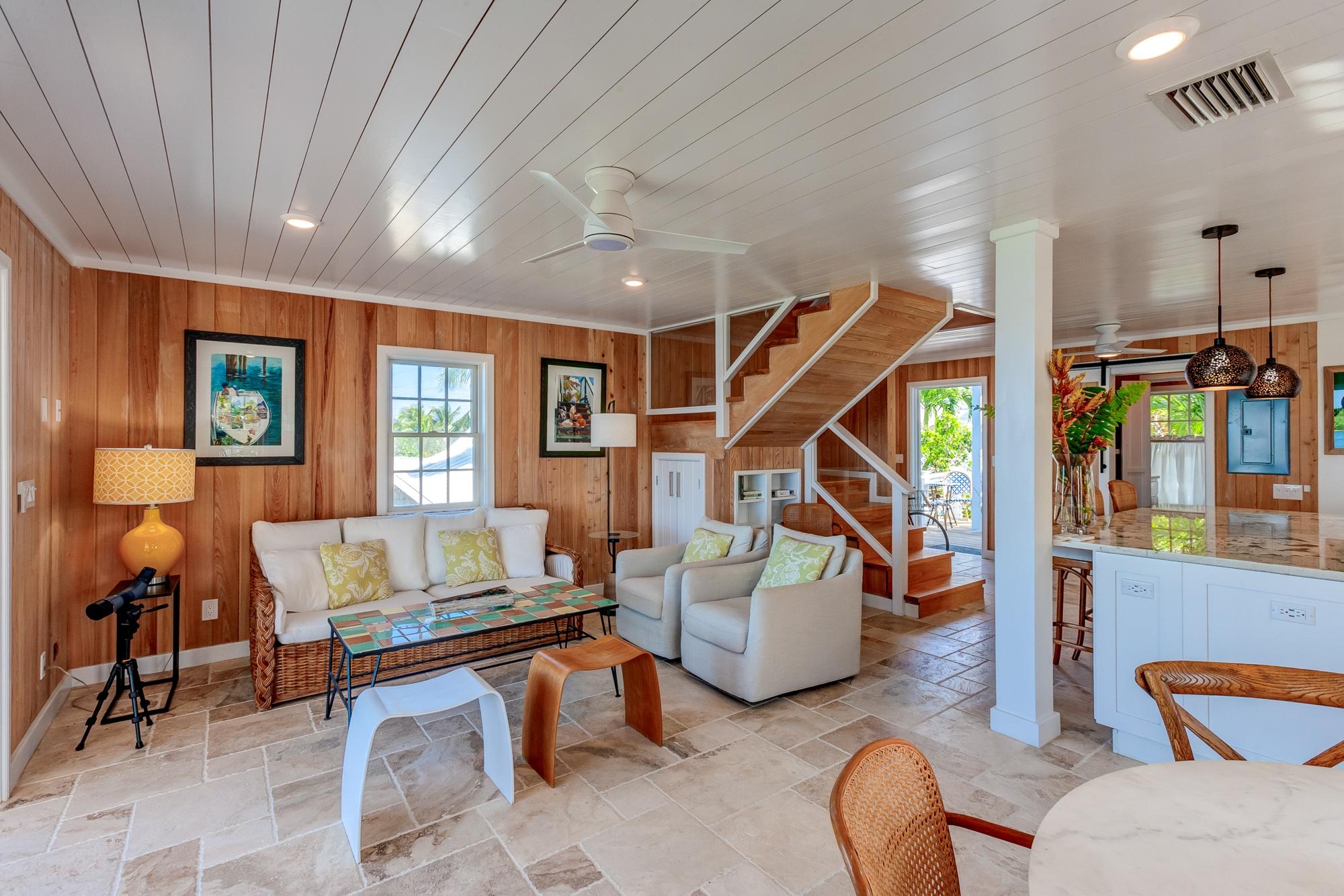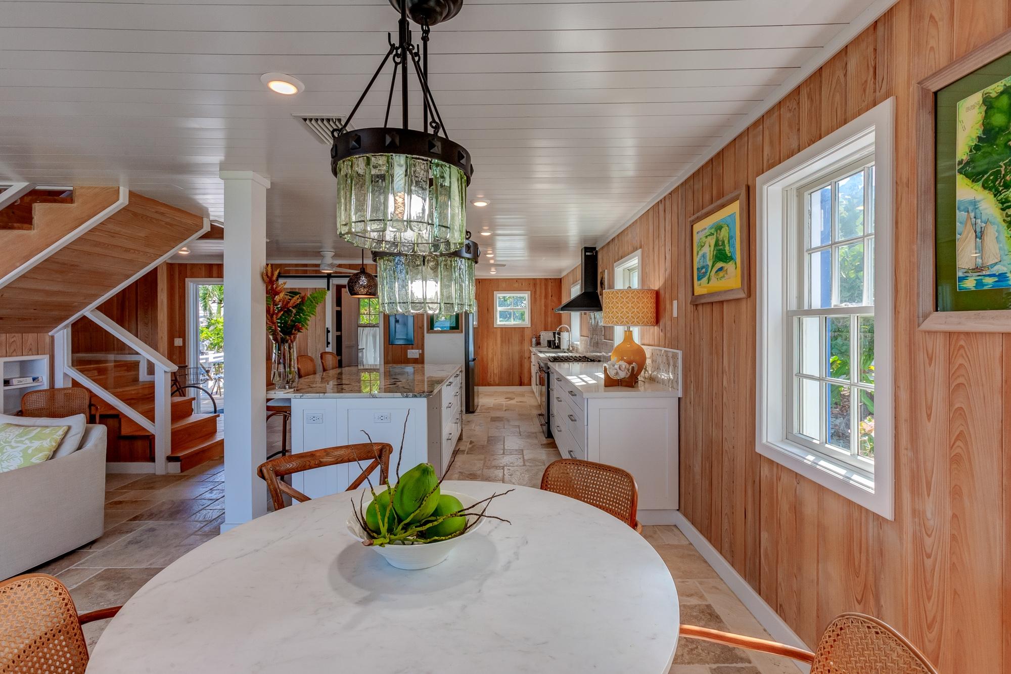 HOPE TOWN HARBOUR LOCATION with DOCK SLIP. Own one of the few harbourfront homes in the village with front row seats to the bustling harbour and only steps away from your own 27 ft dock slip. Beautifully elevated with the focal point of the home being a fabulous front deck overlooking the harbour and village. From sunrise to sunset, enjoy perfect panoramas of the lighthouse from the west side, and ocean views from the east. The tranquil white sand beaches of the Atlantic are only steps away. Newly renovated, it holds the perfect blend of modern living and island charm. A very comfortable home that compliments the genuine slow pace of island life. With 1356 sq. ft of finished floor space, the main floor features an open concept living and dining area, cozy family room, and charming eat-in kitchen. Modern stainless appliances, gas range, new cabinetry and butler’s pantry off the kitchen. Expansive glass doors open to the covered deck that offer extraordinary space for seamless indoor to outdoor living. The 2 bedroom suites upstairs each have ensuites and more incredible views. Turnkey.