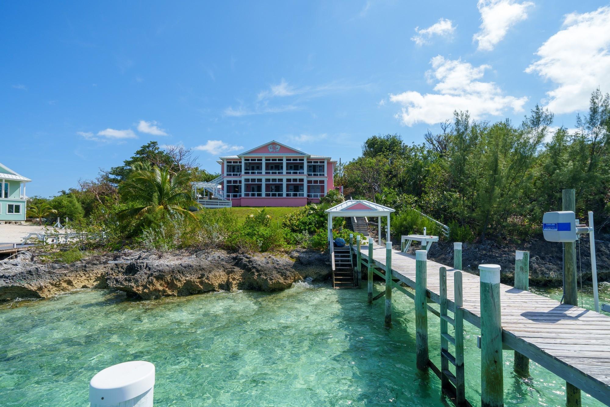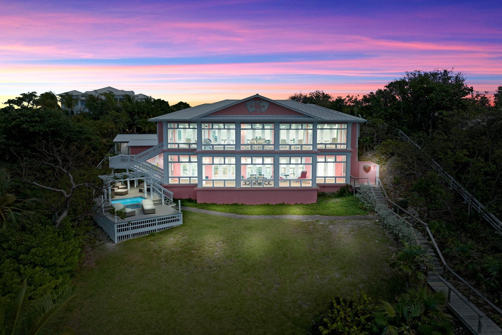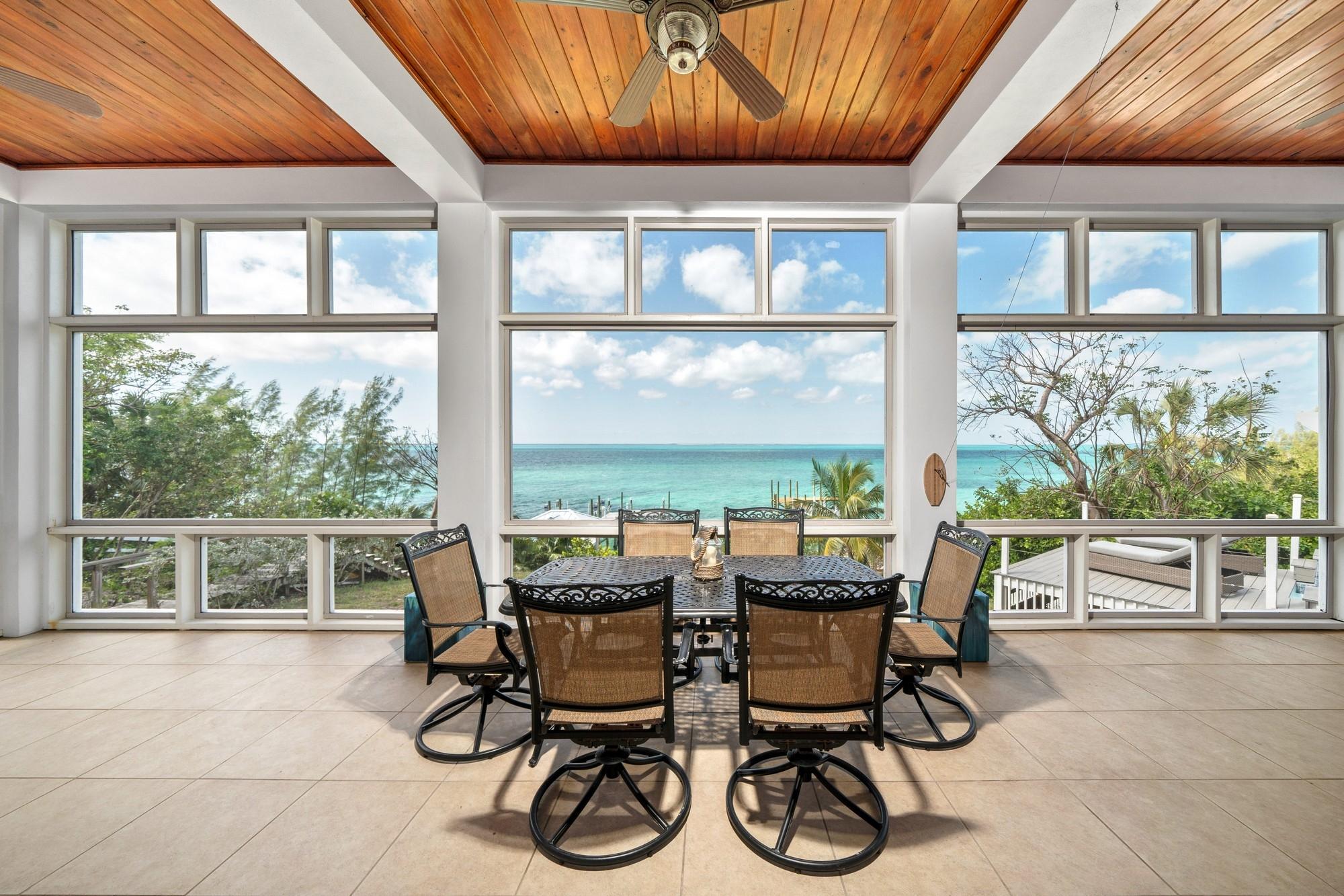 Pair of Aces is a stunning 4,948 sq. ft. residence perched on an 85-foot bluff overlooking the Sea of Abaco. The two-story home, set on a 0.438-acre lot, offers breathtaking views, luxury living, and solid rental potential. With four bedrooms and four bathrooms, it’s designed for multigenerational living or rental income, featuring separate living spaces with full kitchens and laundry on both levels. Outdoor living includes over 1,100 sq. ft. of screened-in deck space, an infinity-edge pool, and a 70-foot dock with a boat lift for easy access to world-class boating. The home also has a 17,000-gallon rainwater cistern, 20KW generator, ample storage, and a commercial ice maker. Located between The Green Turtle Club and Bluff House Resort & Marina, it’s just a short ride to New Plymouth for shops and restaurants. This turnkey retreat offers both luxury and investment potential.