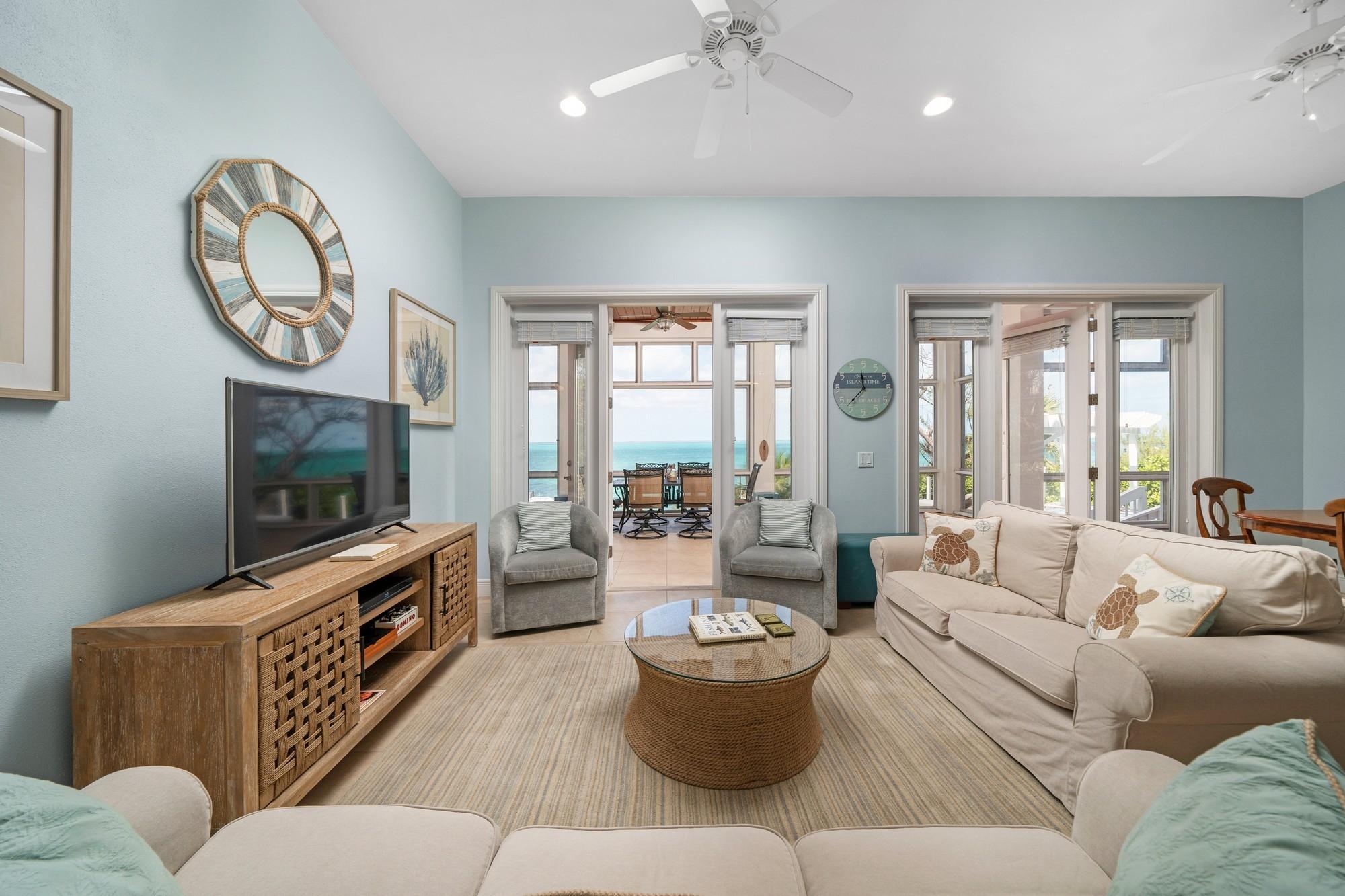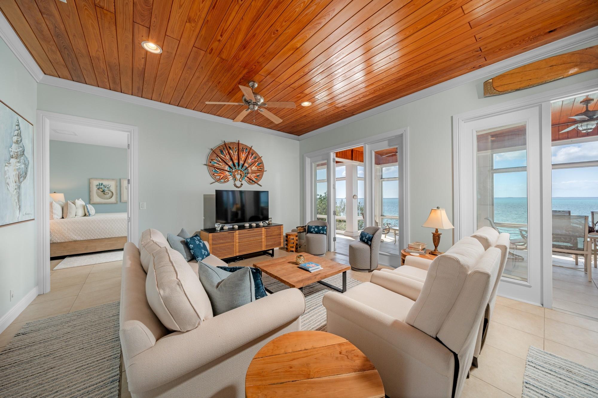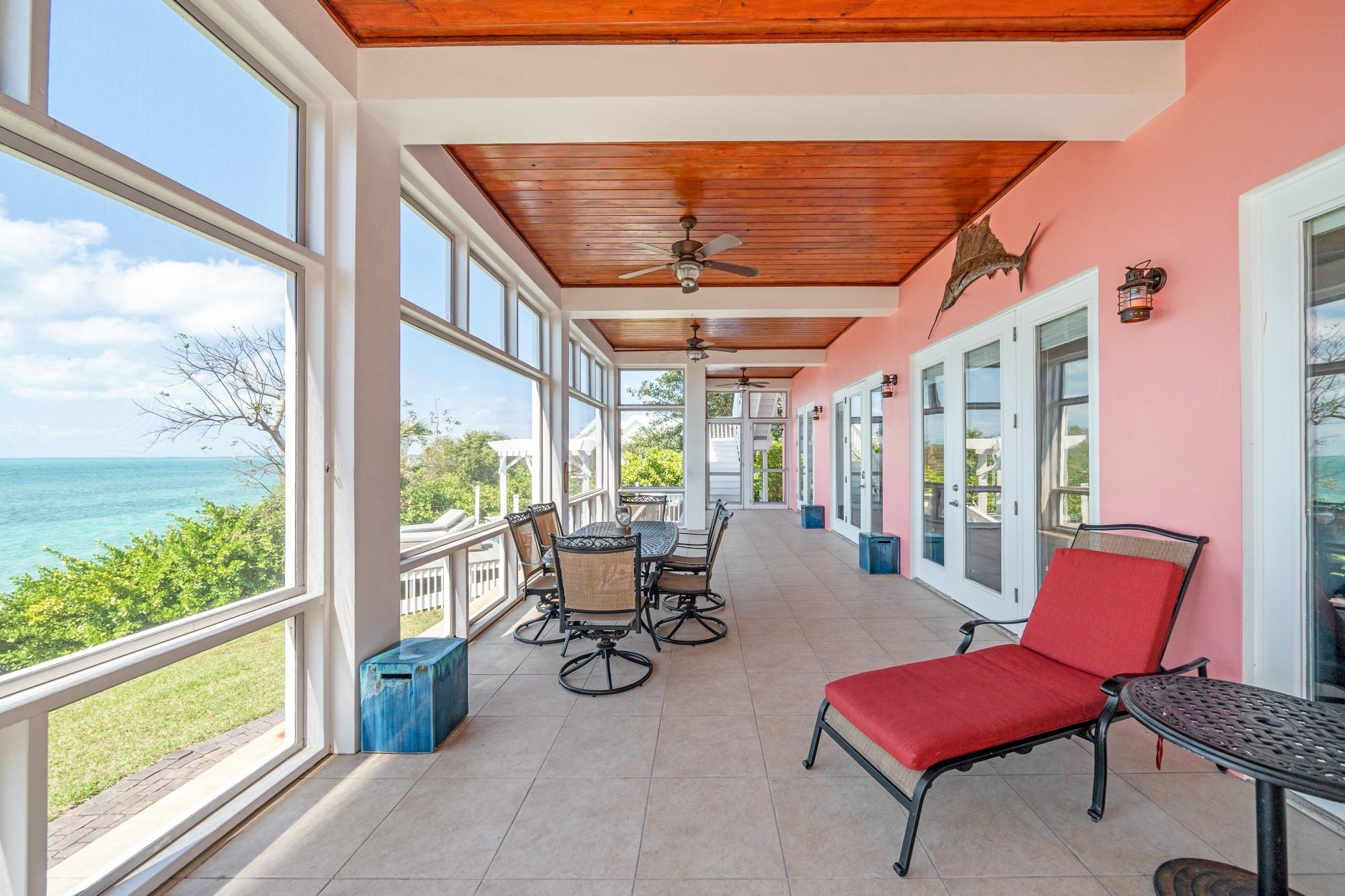 Pair of Aces is a stunning 4,948 sq. ft. residence perched on an 85-foot bluff overlooking the Sea of Abaco. The two-story home, set on a 0.438-acre lot, offers breathtaking views, luxury living, and solid rental potential. With four bedrooms and four bathrooms, it’s designed for multigenerational living or rental income, featuring separate living spaces with full kitchens and laundry on both levels. Outdoor living includes over 1,100 sq. ft. of screened-in deck space, an infinity-edge pool, and a 70-foot dock with a boat lift for easy access to world-class boating. The home also has a 17,000-gallon rainwater cistern, 20KW generator, ample storage, and a commercial ice maker. Located between The Green Turtle Club and Bluff House Resort & Marina, it’s just a short ride to New Plymouth for shops and restaurants. This turnkey retreat offers both luxury and investment potential.