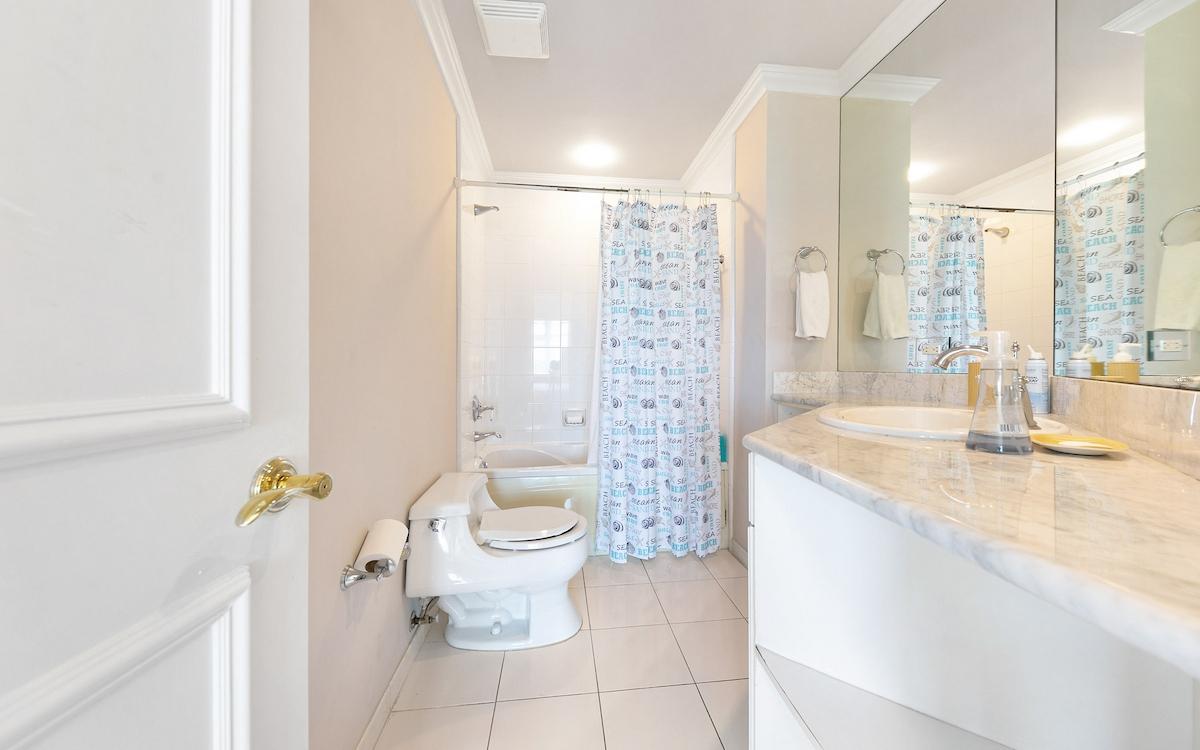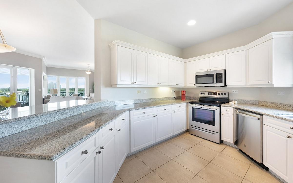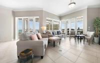 Experience luxury living in this stunning 3-bedroom, 3.5-bathroom sixth-floor condo situated within 7 acres of well-maintained tropical landscaping. Enjoy a secure gated entry, white sand beach access, tennis facilities, a gym, and a beautifully sculpted water park. This tastefully decorated residence offers breathtaking ocean views. The well-designed open floor plan features a spacious living and dining area that seamlessly opens through French doors onto a lovely, covered balcony with decorative railings, perfect for relaxing or dining with family and friends. The condo boasts 9-foot ceilings and ceiling fans throughout. The kitchen is equipped with a double sink, quality appliances, ample counter space, and plenty of storage. There is also a large laundry room with new appliances and plenty of room for additional storage. Each bedroom features polished bamboo flooring, closets, and en suite bathrooms. The luxurious master suite opens onto the private balcony and includes a huge walk-in closet and a private master bathroom.