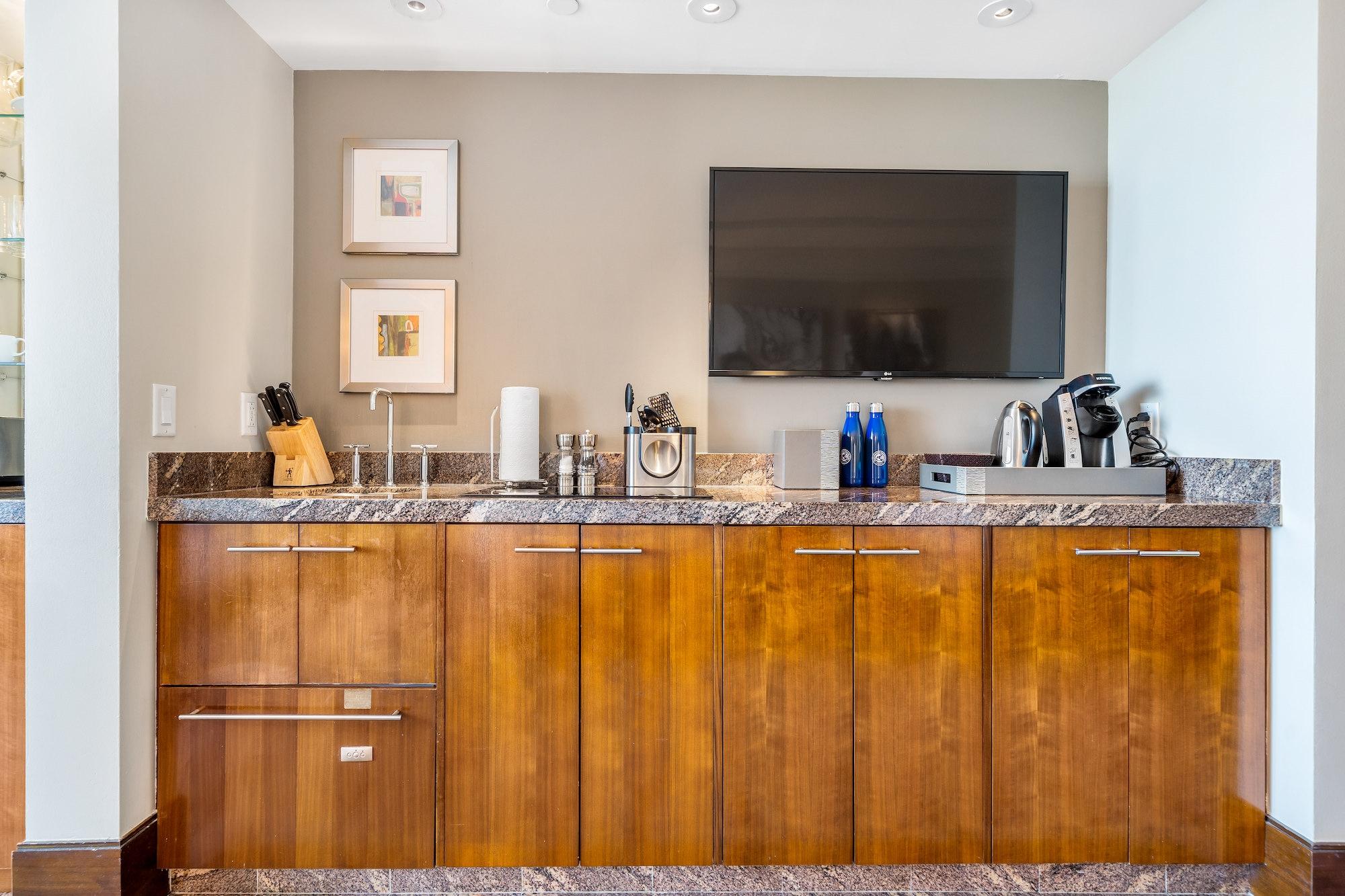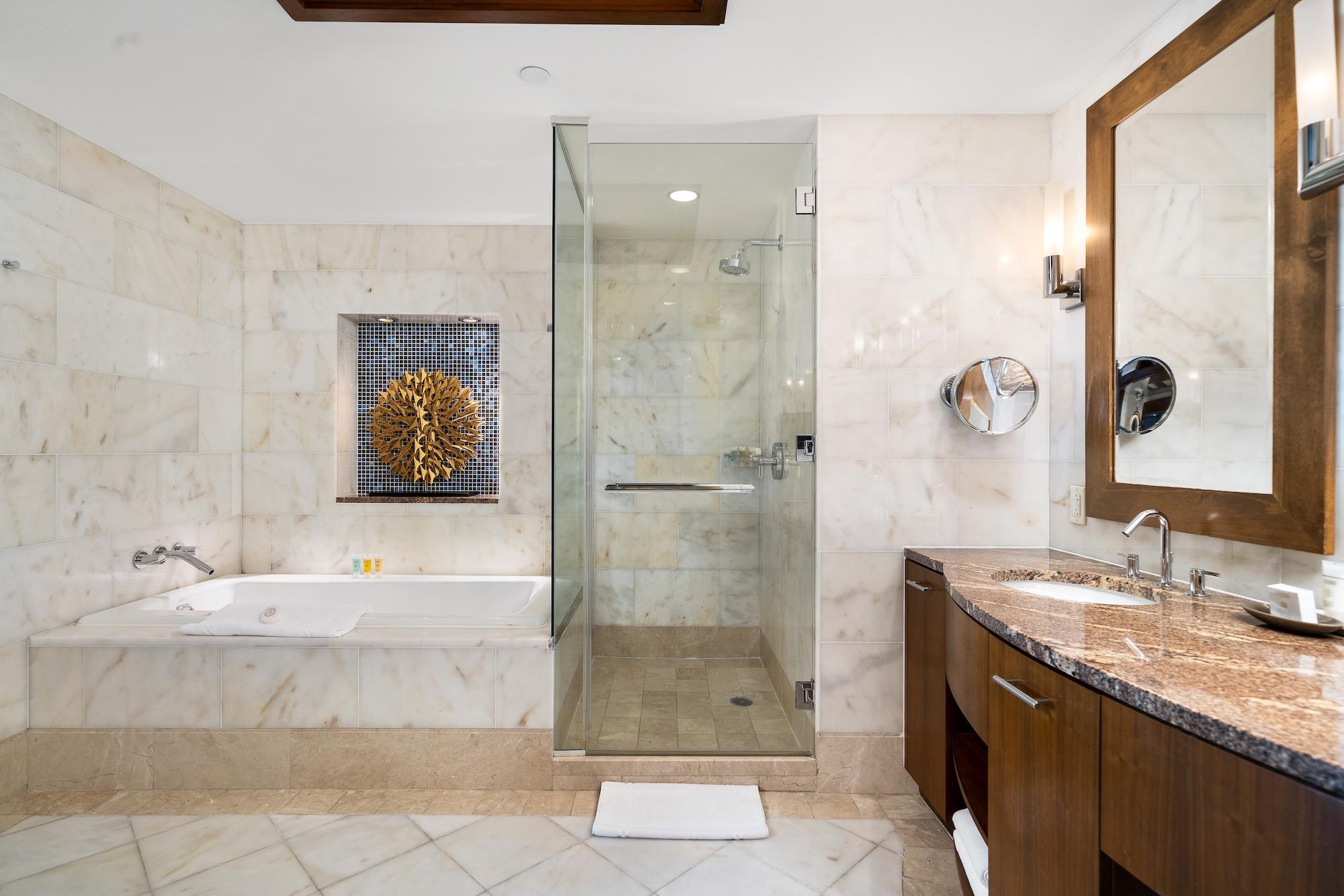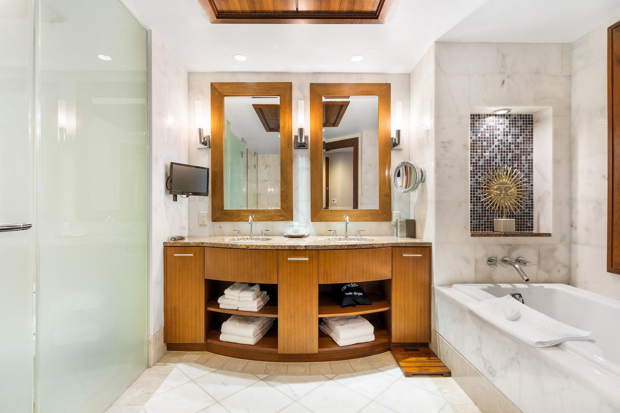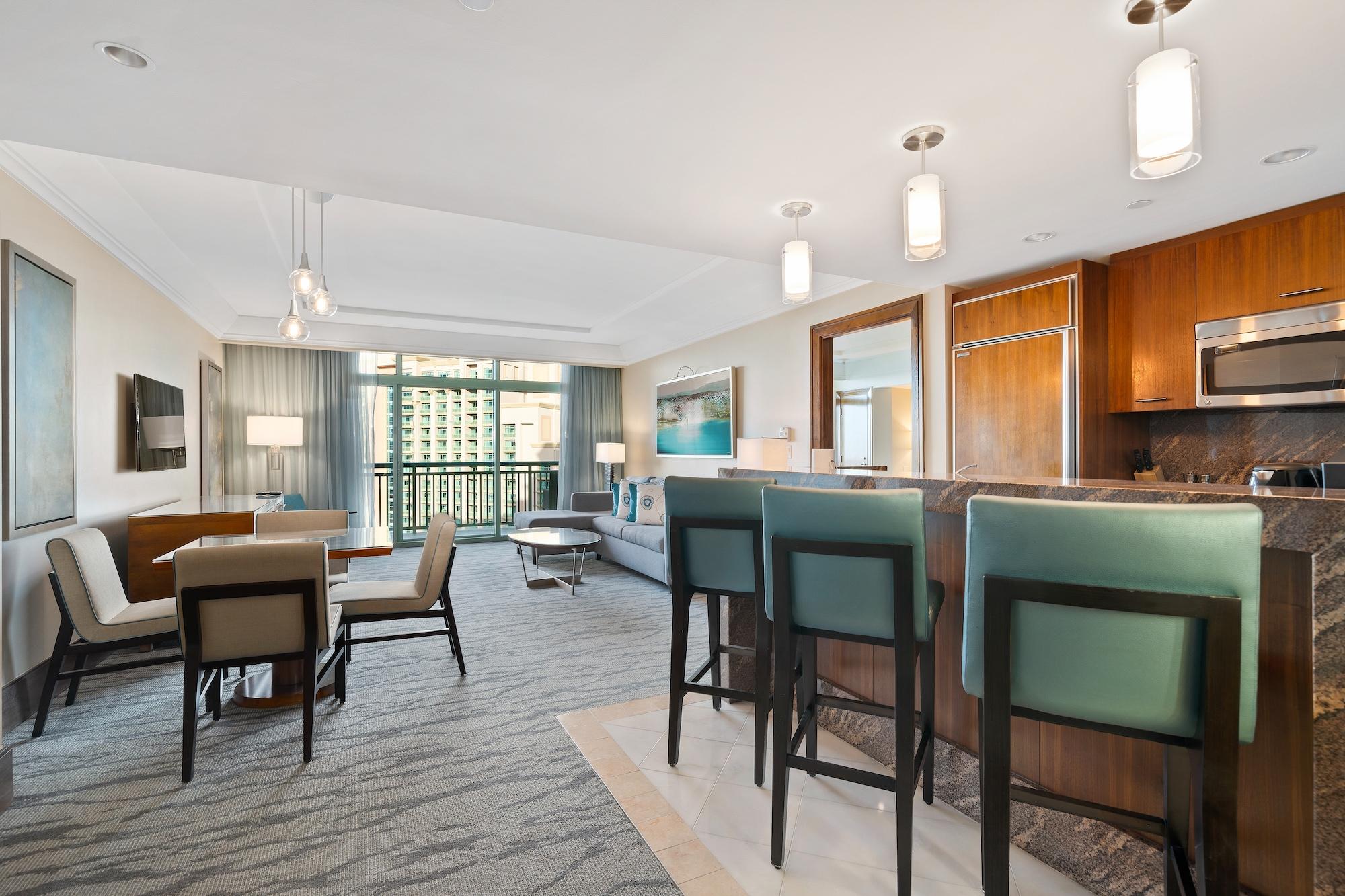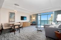 Unit 18-910 & 912 is an 18th-floor Oceanview two-bedroom with breathtaking views. The Studio connected to the one bedroom has two queen beds. Studio with two queen beds are highly sought after by families traveling with small children. The Reef Residences at Atlantis is the only building on the beach at Atlantis that offers full kitchens. The Reef now brags of its newly remodeled elegant suites, fully furnished, from linens to tableware, and features a wide array of custom interior amenities such as crown molding, granite countertops, and fine European kitchen cabinetry. Owners of The Residence at Atlantis (The Reef) have exclusive access to their private gym, a Starbucks Cafe conveniently located in the lobby, and an owner's concierge team is available to assist with everything from dinner reservations to in-house massages and cocktail parties. Other amenities include access to the adult pool at the Cove and Aquaventure at Atlantis.