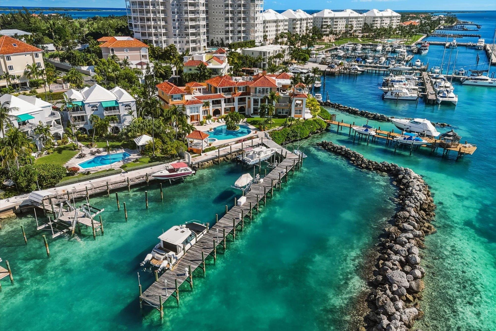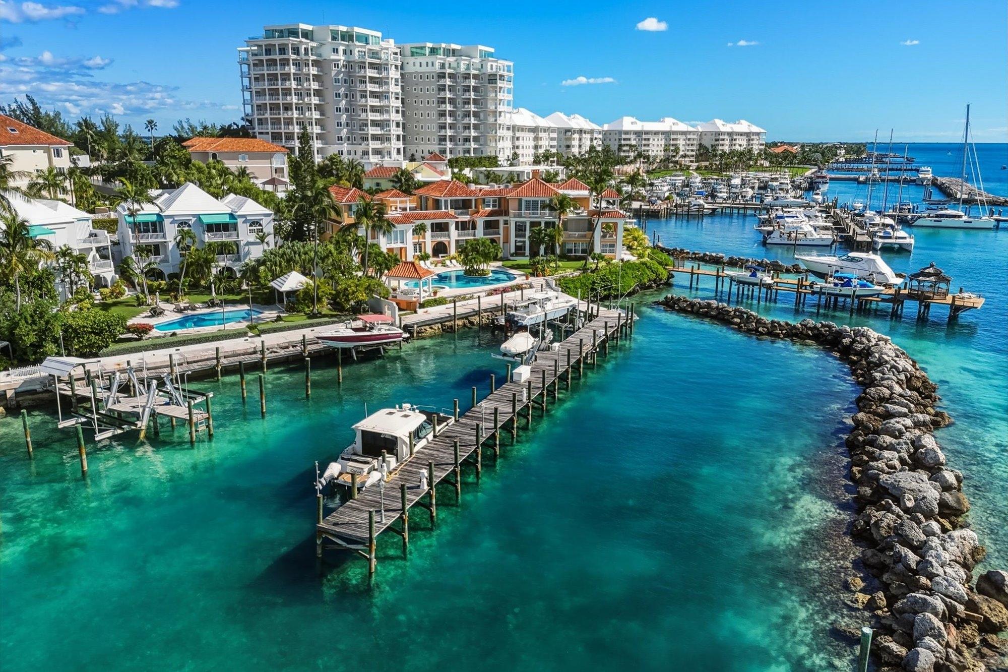 Seamlessly blending harbour-side living with timeless elegance, this second-floor residence in the gated Shangri-La enclave on Paradise Island offers refined waterfront style. This 2-bed, 2-bath condominium features an open-plan living and dining area that frames sweeping harbour and ocean views, a spacious kitchen with a full-width eat-in island bar, and bright, airy bedrooms designed for comfort. A covered private terrace extends the living space outdoors, providing a tranquil setting for al-fresco dining overlooking the marina. Enhancing its appeal is an included 35’ dock slip with a 14,000-lb boat lift—rare among condominium offerings. Resort-style amenities include a swimming pool, landscaped grounds, a waterfront pavilion, indoor owner storage, and a standby generator serving the entire community. Combining exclusivity, convenience, and investment potential, this residence delivers an elevated island lifestyle.
