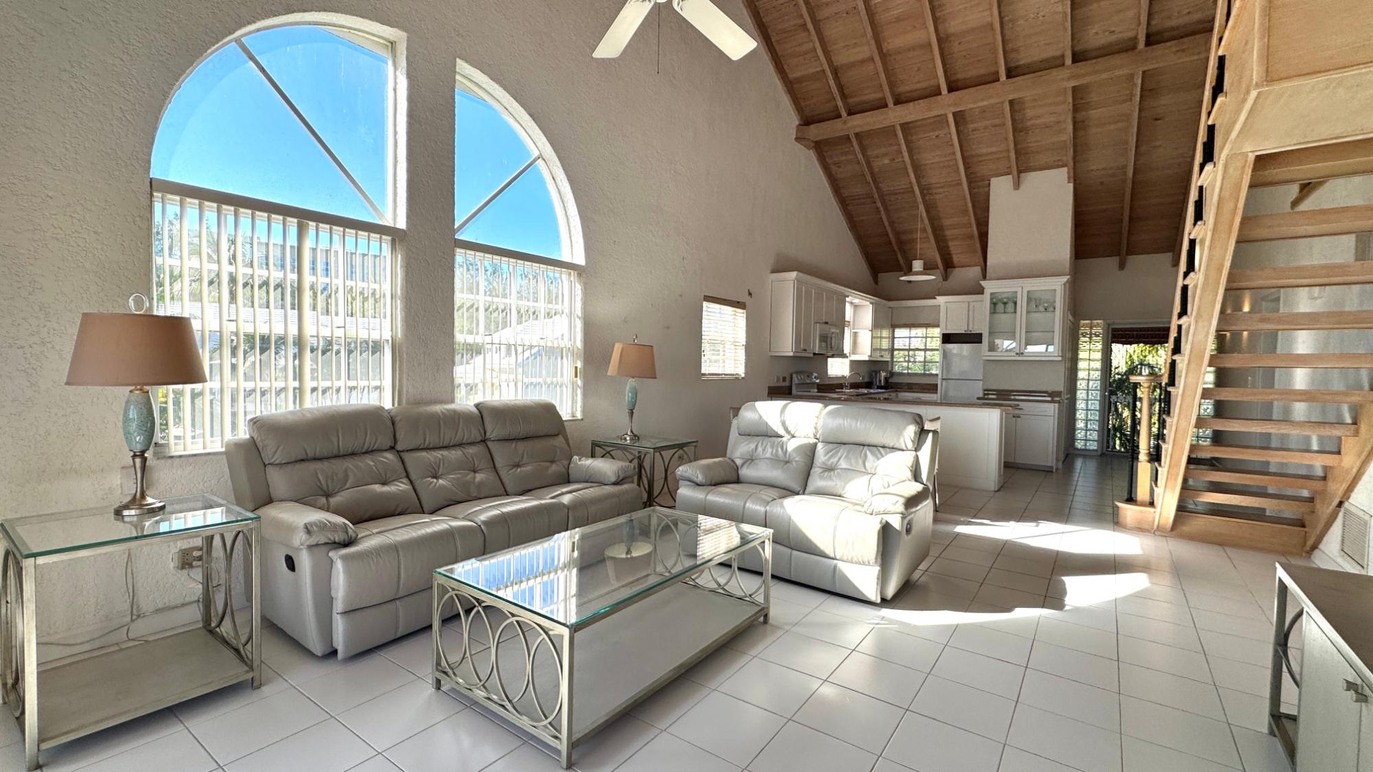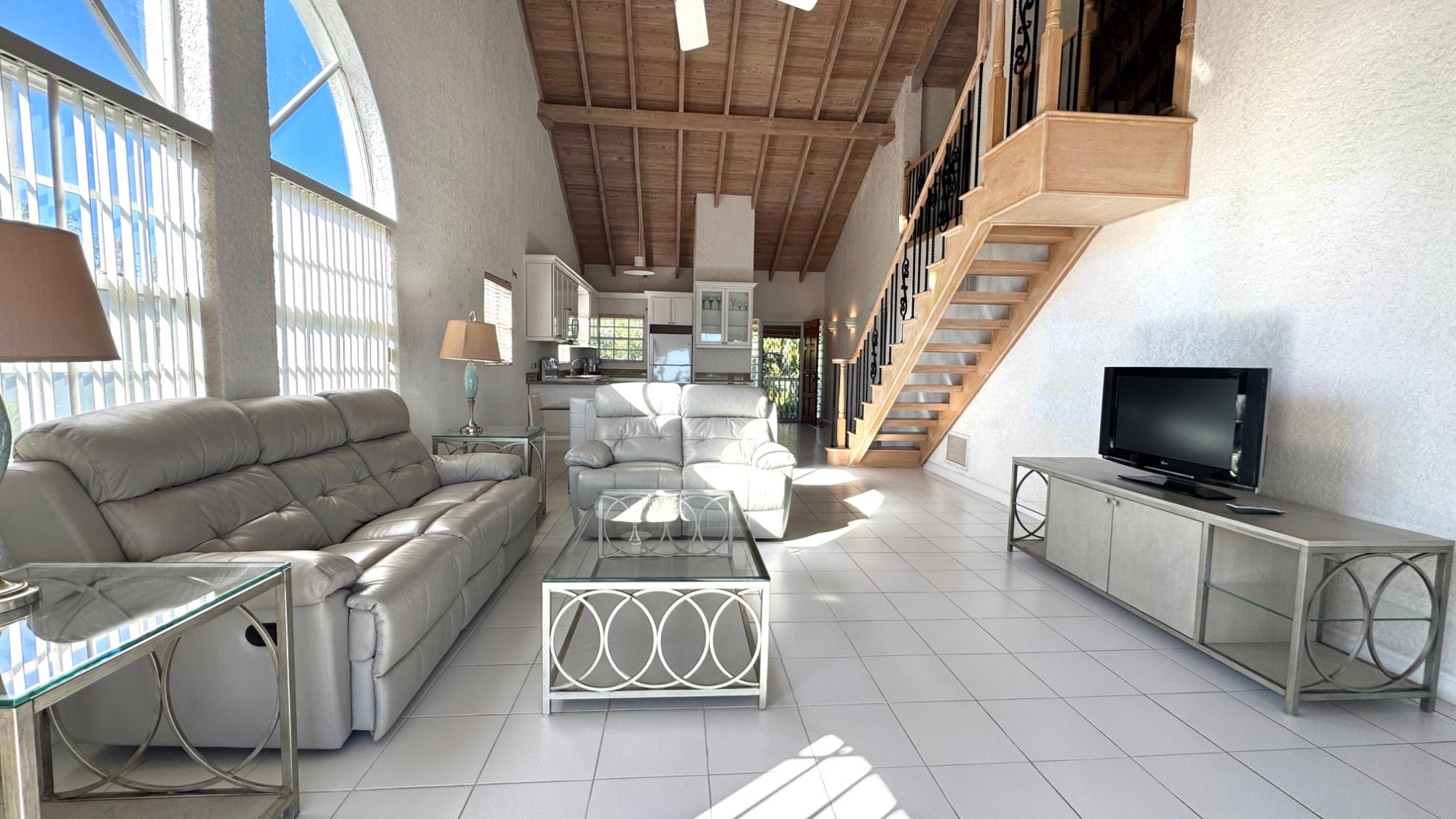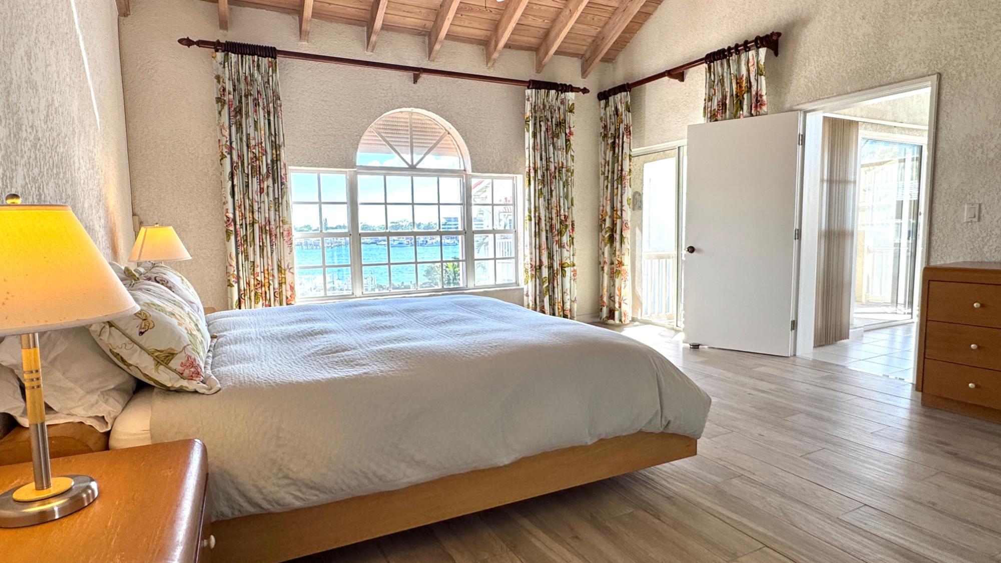 Top floor condo with high open beam ceilings is bright and breezy with open plan living areas capturing the beautiful harbour views. The renovated kitchen offers an abundance of counter space and cabinets with a large bar for easy meal prep and serving. The master suite is very spacious with a walk-in closet and a bathroom with delightful sea views from the shower! An attractive loft with skylights adds extra space for a home office, media room or guests. An optional dock space is available within the protected marina. Comfortably furnished, this Paradise Island penthouse is ready for immediate occupancy. Enjoy peaceful living on Paradise Island with all the amenities, including a new grocery store, restaurants, beaches, and a yoga retreat within walking distance.