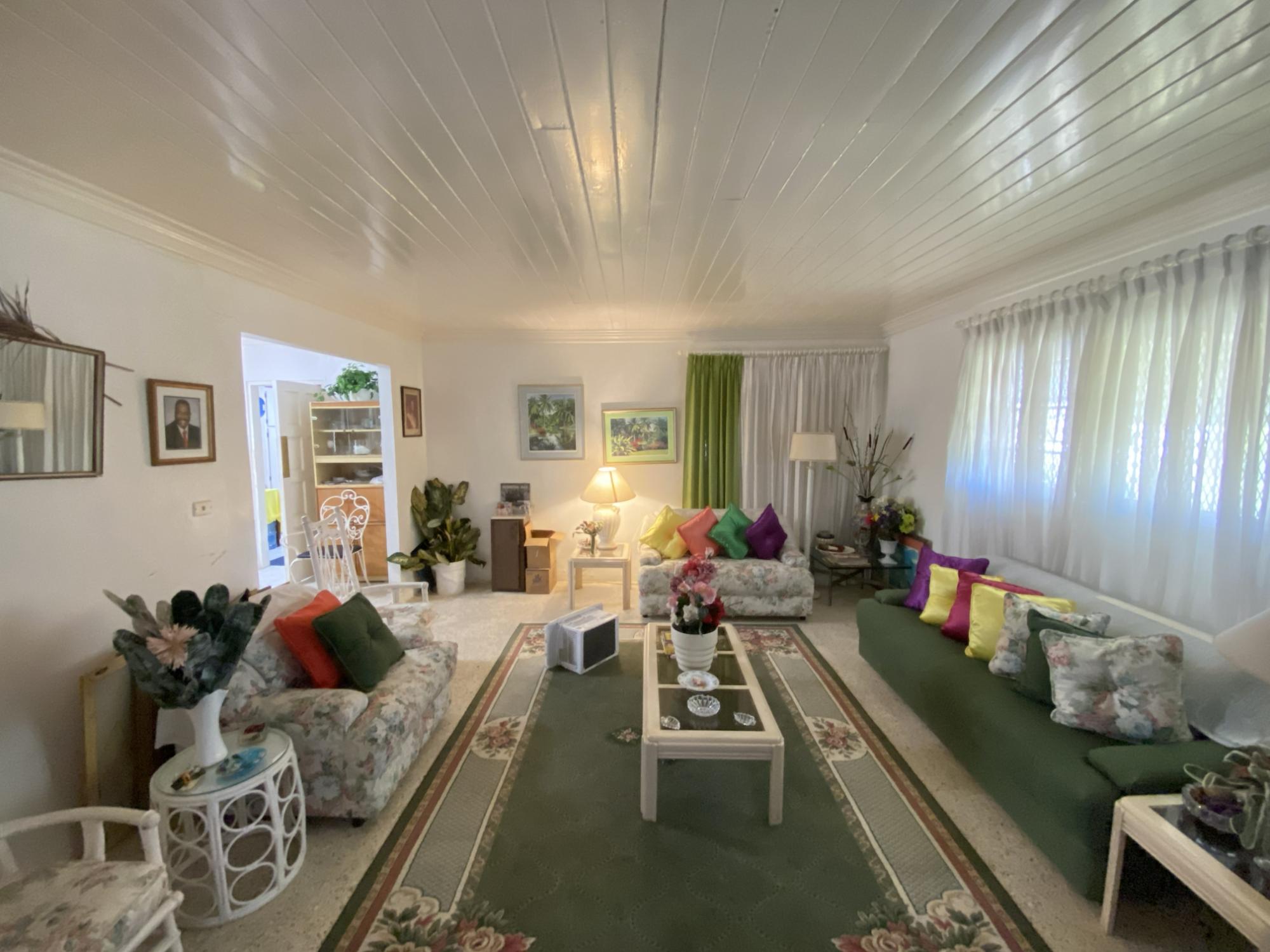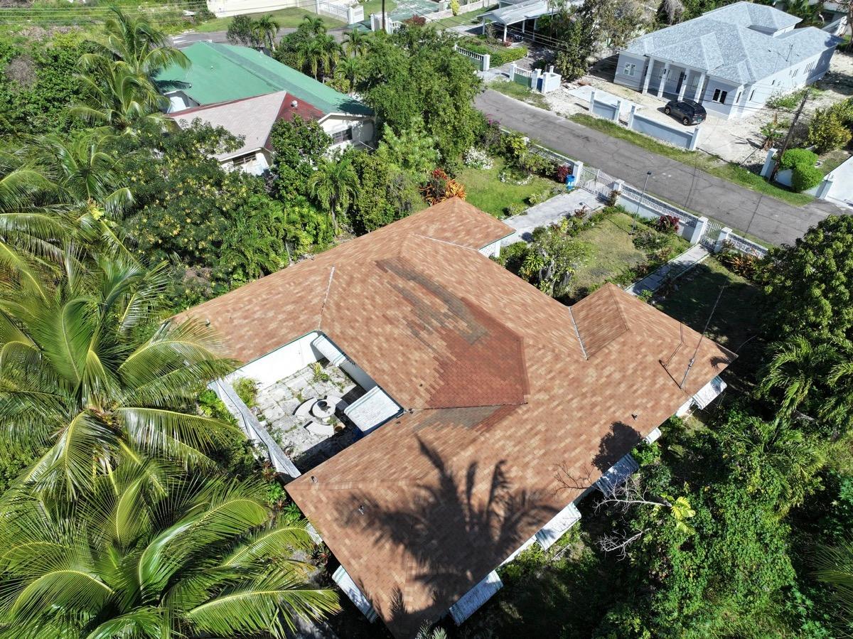 Situated on Queen Road in the well-established Nassau East subdivision, this single-storey residence offers generous living space, mature landscaping, and excellent flexibility for family living or extended accommodation. The home sits on a well-sized lot of approximately 11,716 square feet and is conveniently located just south of Prince Charles Drive, with easy access to shopping, schools, parks, and major roadways. The main residence comprises approximately 2,496 sq. ft. of living space and features a welcoming entry foyer, three bedrooms, two bathrooms, a study, formal sunken living room, family room, dining room, kitchen, and laundry area. The layout provides a comfortable separation between living and sleeping areas and lends itself well to everyday family use. An added bonus is the self-contained efficiency apartment (currently rented) located in the northwest corner of the home, with its own exterior entrance. This space includes an open-plan bedroom/sitting area, bathroom, and kitchenette, making it ideal for extended family, home office use or continued income generation.