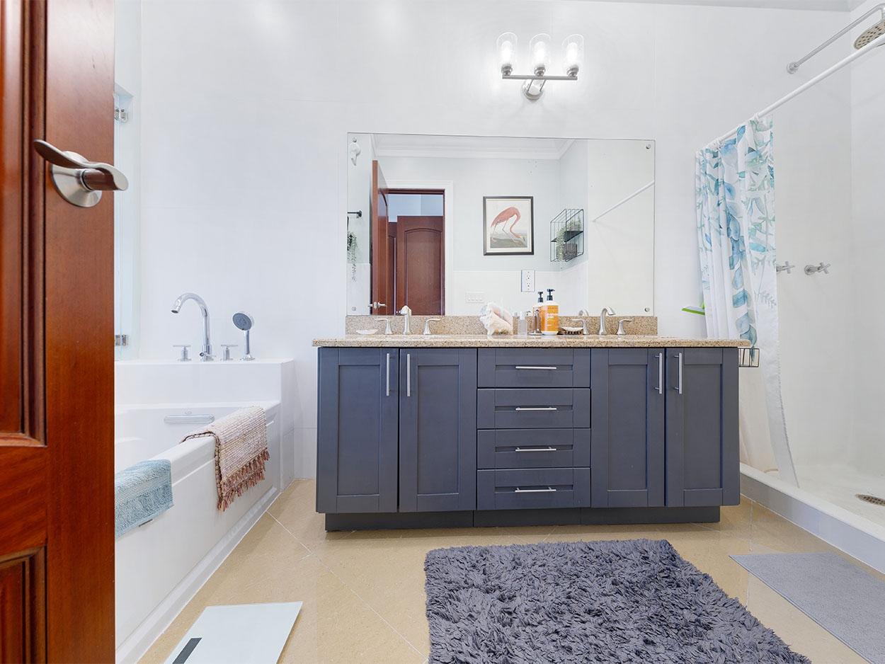 Set along the pristine sands of Love Beach, this exceptionally renovated three-bedroom, beachfront condominium with garage are located in the exclusive, gated community of Columbus Cove. Offering 1,901 sq. ft. of living space, the residence features polished travertine floors in the main living areas, timbered bedroom flooring, 9-foot doors, crown mouldings, recessed lighting and solar system. The custom kitchen is appointed with granite countertops, glass-tile backsplash, and stainless-steel appliances. The primary suite boasts a jacuzzi tub, double vanity, frameless glass shower and smoked-glass wall. Hurricane-impact windows and doors frame unobstructed ocean views and direct beach access. Columbus Cove offers resort-style amenities including multiple swimming pools, a fitness center, landscaped gardens, 24-hour security, and on-site management—all minutes from dining, shopping, and Nassau International Airport. An ideal full-time residence or luxury beachfront investment opportunity as the garage can also be converted into a one-bedroom apartment. Price is in USD.