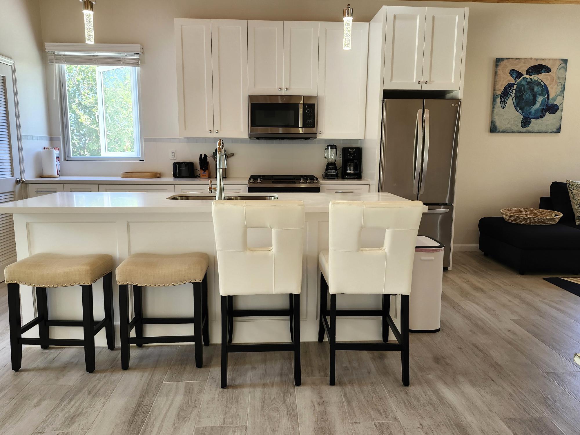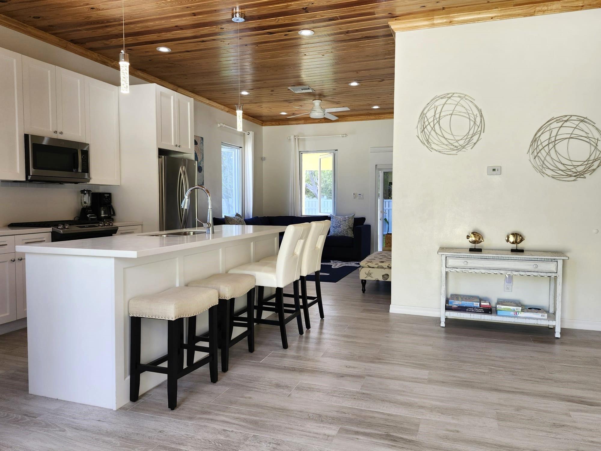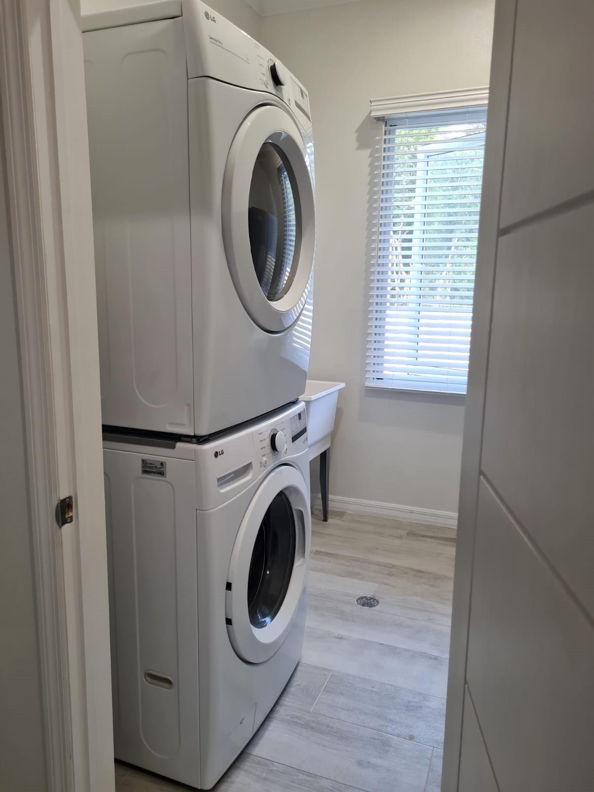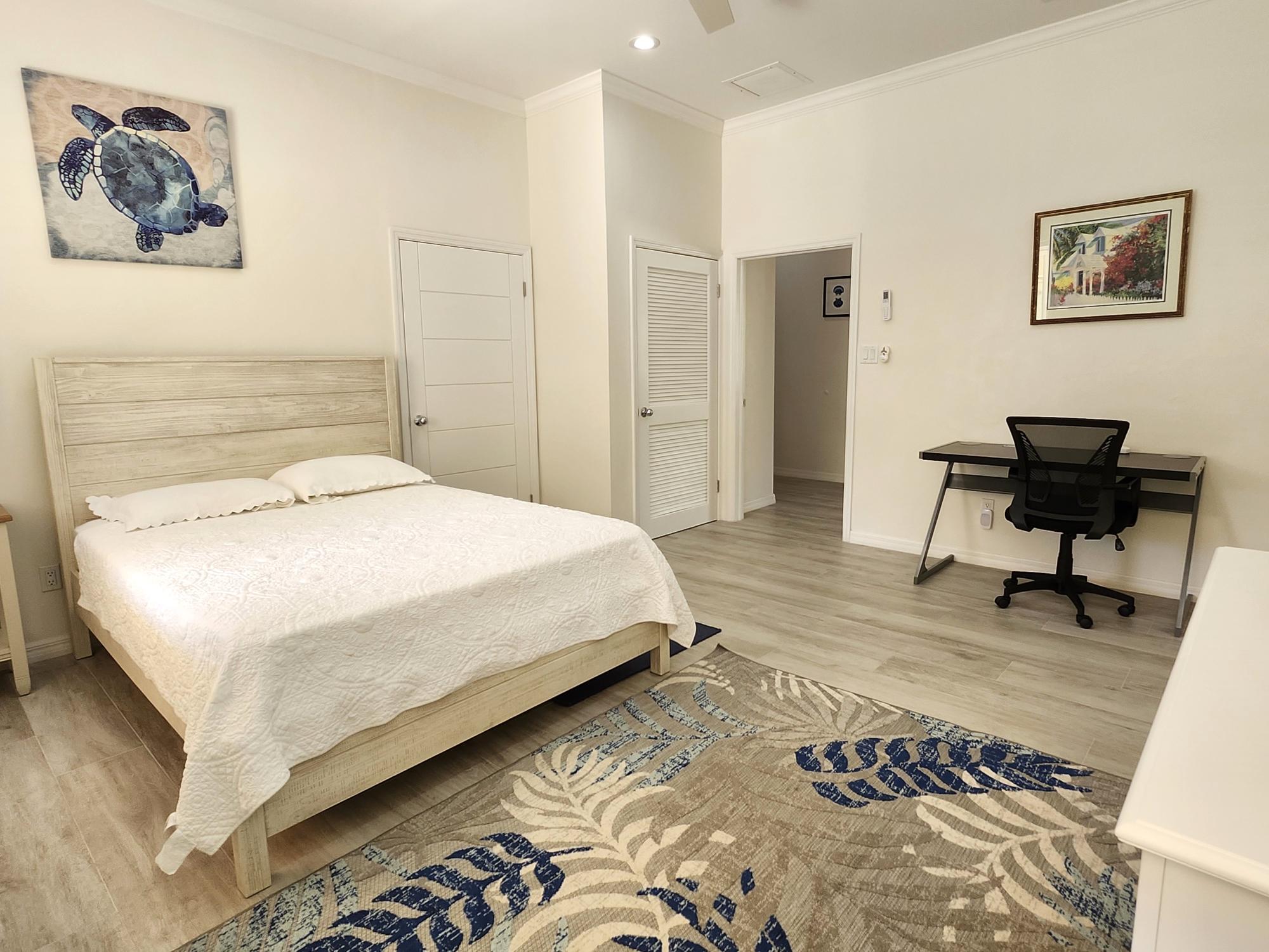 Modern, spacious, fully and tastefully furnished 1 bed, 2 full bath turnkey unit. The open concept large living room and kitchen provide generous living space, and the pantry and separate laundry room bonus storage areas. Ensuite bedroom with walk-in closet, desk and bathroom with double sinks. Hurricane impact windows and patio doors provide natural lighting. The pool, large rear patio, beautifully landscaped yard and barbecue grill are perfect for outdoor enjoyment. Stand-by generator, light, water, gas all included.