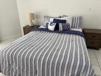 Recently renovated condo in the gated community of Chertsey located in the heart of Cable Beach with access to restaurants, schools, public transport, food stores and the international airport. The unit comes fully furnished with two very spacious bedrooms both en-suite, a fully equipped kitchen including quartz countertops and hardwood cabinets and a spacious living and dining area. Added bonus to this unit is a stackable washer and dryer. There is also a fully enclosed patio at the back of the unit ideal for alfresco dining.